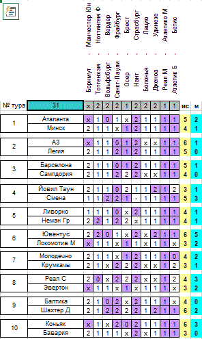 В следующем туре Смена примет рвущийся вверх Коньяк, а Легия – замыкающий таблицу Ливорно. Балтика едет в гости к Локомотиву, Бавария сыграет дома с АЗ, а Сампу ждёт домашнее дерби с Аталантой, которая может догнать соперника в случае успеха. Делящие шестую позицию Минск и Молодечно сойдутся в очном противостоянии. Барселона примет Шахтёр, ещё не потерявший шансов на успешное завершение регулярного сезона. Реал и Ювентус сыграют на выезде с белорусскими Крумкачами и Неманом соответственно. А в британском дерби Эвертон примет Йовилл. До новых встреч! Удачи нам всем!!! Денис фартовый Астапенко