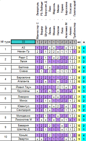 Уже в следующем туре французский клуб может поравняться с подпирающим топ-6 Минском, к которому едет в гости. Замыкающий лидирующий секстет Молодечно наведается к географически близкому лидеру таблицы. Легия примет Крумкачы, а Бавария едет в гости к Сампе, отстающей всего на два балла. Балтика и Барселона снова сыграют домашние матчи, принимая итальянские Ливорно и Ювентус соответственно. Аталанта встретится с АЗ, Эвертон примет Неман, а Сосьедад едет в гости к Локомотиву.