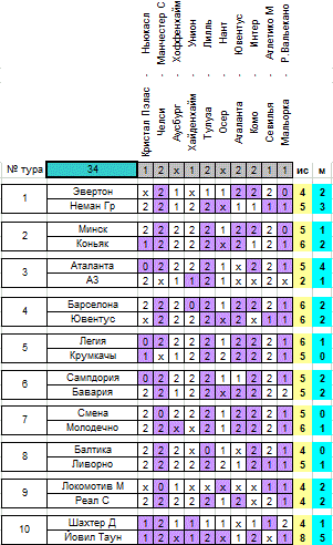 В следующем туре дуэт лидеров сыграет в гостях у ещё довольно мотивированных Реала и Коньяка, а Бавария примет давно не побеждавший Локо. Молодечно сыграет с Барсой, а Сампдория наведается в гости к Йовилу. Балтика едет в Ливерпуль, Аталанта - в Гродно, а Минск – в Алкмаар. Ювентус ждёт выездное дерби с Ливорно, а Крумкачы примут Шахтёр, с которым суммарно имеют семь матчей без побед. До новых встреч! Удачи нам всем!!!